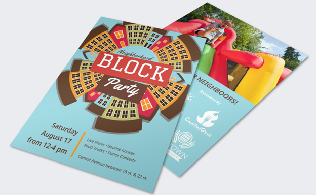 No matter what style of flyer you choose, thoughtful design is a must. Double check accessibility requirements and ensure that your flyer pops. While working on your flyer step about 6 feet back from it and ask yourself: are you still able to figure out what the event is and who’s throwing the event? If not, consider adjusting your design to be scannable by any passerby. You want to attract their attention like a moth to a fundraising flame.